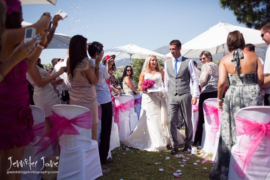Hacienda San Jose, is a stunning venue set in the hills of Mijas and was the venue for the wedding of Louise and Adam. Their son stayed close as they exchanged their vows in front of close friends and family, who had traveled from England to join in this joyous occasion. The Villa looked amazing by the extra touches brought together by Laura of Reviva-Weddings.A wonderful dinner was provided by Heather and her team of Fiesta Sol and celebrations then went into the early hours of the morning, led by the music of Ian Preston.
