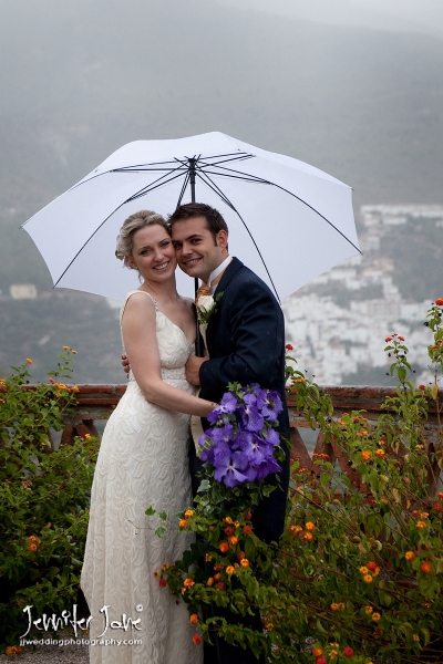 Cazulas is a stunning venue located in Otivar near Granada. When I first visited Palacete de Cazulas, Otivar I fell in love with it and was so happy when I met Rachel and Chris and they told me that this was going to be the venue for their wedding. Although rain filled the skies the venue still looked stunning. After the ceremony, undeterred by the rain we took a walk around the gardens for some photographs. Rachel and Chris could not stop smiling all day, I don´t think they even really noticed the rain. A huge thank you to the bestman for his amazing organization skills and great thinking of bringing a supply of large umbrellas. Below are just a few of my personal favorite images from this wedding.