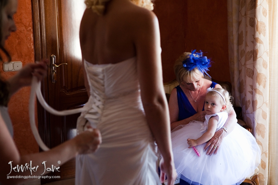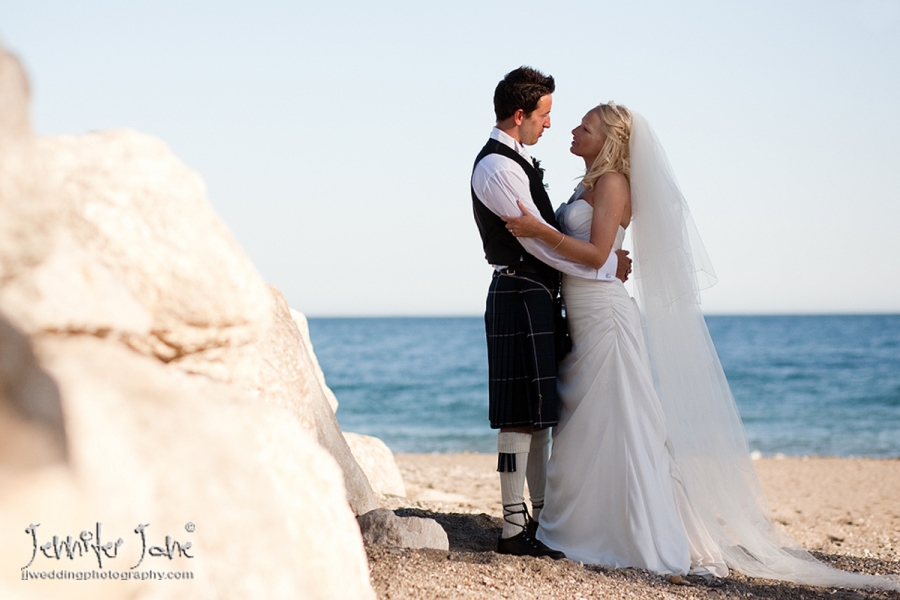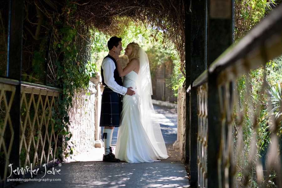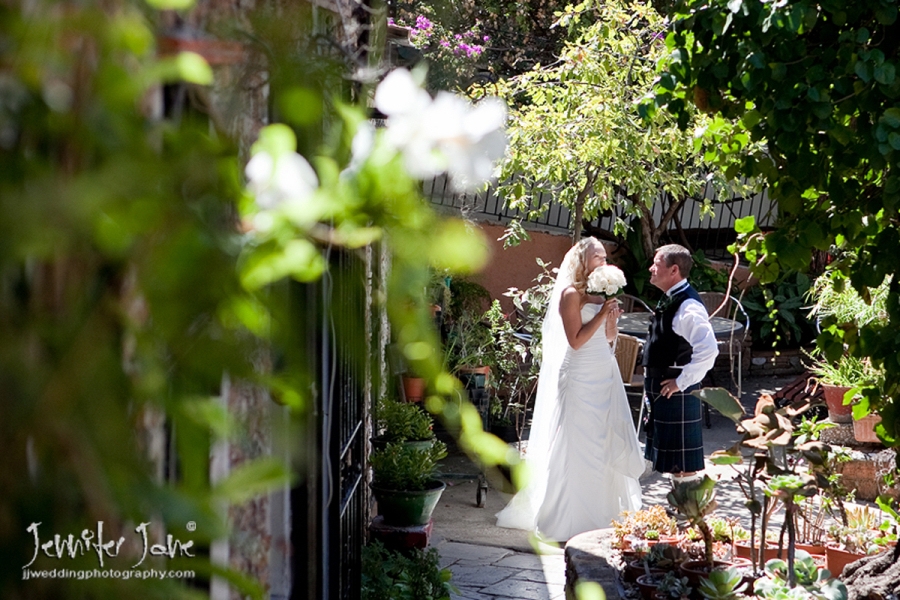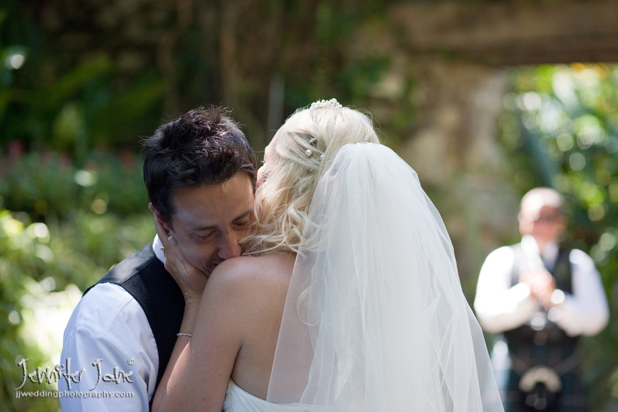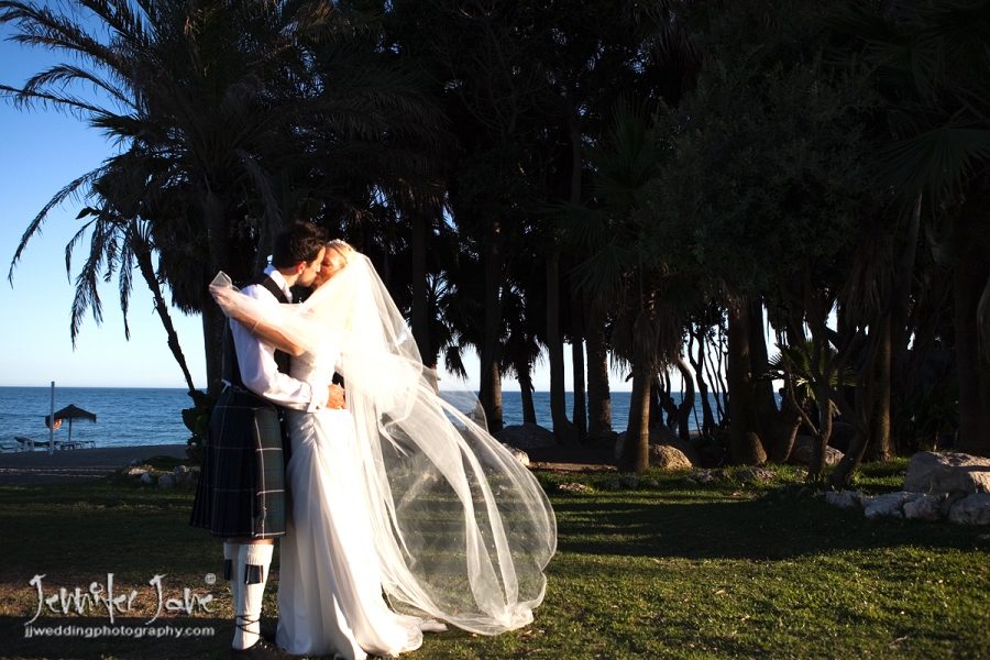 Preparations began at a private villa in San Pedro with Nicola having her hair and makeup prepared by the fabulous Kathryn Parr while a nervous Colin was downstairs getting dressed in to some traditional Scottish attire. They both had separate transport to move onto the stunning Botanic Gardens of Gibraltar for the ceremony. Tears were held back as Nicola, her father and her bridesmaids (accompanied by a Scottish bagpiper) entered the dell. After the moving ceremony and a walk around the gardens it was back to the villa for cocktails and canapes and with a beautiful sunset developing we took a stroll down to San Pedro beach front for some more photographs. A lavish dinner was enjoyed by all as darkness turned into night and the day was a branded success thanks to Jan and Kath of JK wedding Planners.